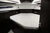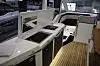 Båten har for øvrig også en liten jollegarasje fra akter. Taket i salongen kan skyves opp, og på fordekket er det tilrettelagt for stor solseng. Prisen ligger på i overkant av 3,5 millioner kroner. Motoriseringen er enten med dobbel Volvo Penta D6 med hekkaggregat, eller IPS 500 om man vil påkoste litt ekstra.