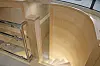 På vei ned til lugarene legger vi merke til den gode avrundingen langs trappegangen. I tillegg er det her også en godt integrert rullestolheis som vi ikke ser til før vi blir gjort oppmerksom på at vi faktisk står på den. Alt er nydelig utført med denne stålbåten.