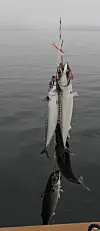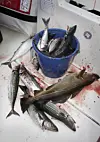 Tirsdagen ble avsluttet på absolutt best mulige måte. Tre aldrende herrer, med tørrfisk innkjøpt på Coop i Kabelvåg, og et par lettøl i sekken, tok med sine håpefulle på en fisketur ingen av oss vil glemme. I et dundrende duskregn la vi fra kaia i Kabelvåg sånn ved syvtiden tirsdag kveld. Med blå pøs, som vi måtte låne av vaskehjelpen på samme Coop butikk, trodde vi at hvis lykken stod oss bi, kunne vi i hvert fall fylle bøtta. Ha, ha, ha. Etter å ha manøvrert oss frem til en av stakene rett øst i havet for Kabelvåg, slapp vi snørene på en 15 meters grunne. Om det kokte, jo det gjorde det i havet, det gjorde det etter vert på akterdekket også, og til slutt kokte det i hodene til alle vi som var om bord. Snøret nådde ikke bånn før vi dro opp søkklastede kroker med småsei, feit makrell og en og annen torsk. Status etter en times fiske ble at cirka ni av de største fikk plass i bøtta, og på dekk lå det cirka 11, i tillegg kastet vi uti 45 småsei. Vi måtte rett og slett avbryte fisket etter en time fordi vi mente at hvis dette overfisket fortsatte, kom vi til å få Kystvakta på nakken. Steike artig va det læll!!