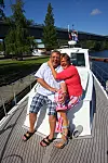 Vi blir unektelig litt imponert over folks grundighet overfor ting de er glade i. Når vi ber om et bilde av de to sammen på fordekket viser han at han også er glad i kona si, de ler sammen igjen, ser på hverandre og så konkluderer han med at det skulle vært ferie mye oftere.