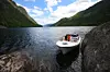 Vi kan varmt anbefale hytte nummer én. Nærmere vannet kommer du ikke med fast grunn under bena. Campingen hadde egen utsettingsrampe for båt, noe mange benyttet seg av i følge campingplasseierne. De fleste vannene i Telemark er gode fiskerike vann, så de fleste har båt av ymse kvalitet og størrelse.