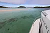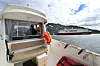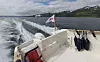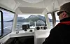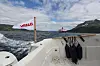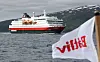 I samme øyeblikk som vi nærmer oss Rya og ”Hella-straumen” dukker en annen majestet opp. Nordgående hurtigrute Nordlys hilser oss med sin gigantiske skygge. Vi later som vi er med i verdens mest populære TV-program, og følger etter med vår lille ”Fishermans friend” på trygg avstand fra kjempen. For her skiller det nøyaktig 115,4 meter i lengden (Nordlys 121,8 m) og 16,66 meter i bredden (Nordlys 19,20 m). Vi har en soveplass til rådighet, på Nordlys har de 475 køyer. Eneste prestasjon hvor vi slår ”Nordlys”, er på farten. Her klarer vi nesten 30 knop, mens de blir bare sinker med sine 15.