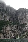 Litt lenger inn kommer vi til Rogalands største turistattraksjon, som også er verdt å se fra sjøen. Platået rager 604 meter over havet, og blir besøkt av rundt regnet 100.000 personer i året.