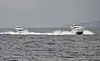 Denne sjøsikre fritidsfiskebåten merket bølgene i Bømlofjorden, men slikt tåler disse farkostene uten problemer.