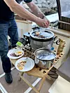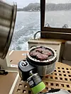 EKSTRA KJØKKEN: Vi brukte Cobb-grillen som ekstra bysse ombord under et reportasjetokt på Vestlandet i april. Her tilberedes egg og bacon til frokost.