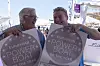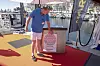 Det er med glede Heiberg-Andersen og Aalrud tar i mot klistremerkene som viser at båtene deres er nominert til European Powerboat of the Year.