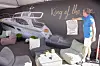Han prøver klistremerket forskjellige steder, for at det skal bli mest mulig tydelig på Europas største flytende båtmesse at de er nominert. Den ender til slutt i teltet, på en stor plakat som viser 360 CC.
