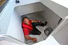 Et av de viktigste momentene for å klare dette er selvfølgelig vekten. Selv ikke en RIB på 25 fot er i nærheten av å klare matchvekten til Catch. 640 kg er rett og slett unikt. Dette klarer de med vakumstøping, og en spesiell konstruksjon i bunnen. Båten er bare 210 cm bred, men fantes ikke rank. Årsaken til dette er en ballasttank som fyller seg med 490 liter vann så lenge båten ligger i ro.
