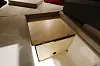Putene er tykkere enn hva vi har sett tidligere i båtene fra Nordkapp. Vi så slik tykkelse først fra samme designer i Sting 610 som ble kåret til Årets båt i Europa. Putene er også noe hardere for å gi god demping. Og ser vi på akterbenken kan vi her trekke fram en av de smarte løsningene som designeren har fått til i denne båten. Ofte kan det være et herk å åpne luken uten å ta av puten først. Og enda verre skulle det jo blitt med tykkere pute. Men her åpnes ikke luke tradisjonelt, med hengsler på langsiden. Hengslene er på kortsiden, på babord side, og det er dermed mye enklere å komme til stueplassen. Hvorfor har vi ikke sett dette før?