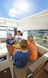 Taket består av to seksjoner som kan åpnes uavhengig av hverandre. Man kan altså velge å åpne taket forut eller akterut hver for seg, eller ha åpent på begge sider samtidig og gjøre om båten til en kabriolet.