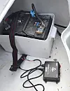 STRØ: Sonar T-box, den som sende WiFi monterte jeg fast i batteriboksen, og koblet 12v ledningen til hovedstrømsbryteren. Axel Nissen-Lie