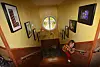 Skolestua er ikke bare kafe. Tanja Mueller er også en flink fotograf, og i de mange rommene bruker hun plassen til å vise både sine egne og andre fotografers verker. Et tydelig populært lite galleri, for her hang det mange bra bilder som solgte godt. Vi møtte en av kundene som kjøpte en serie med bilder fra en bilkirkegård. Gaver sa hun når vi spurte om det var henne som var så bilinteressert.