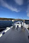 Når vi var ute og prøvekjørte var ikke været slik vi skulle ønsket oss. Ettermiddagssolen hang døsig over Askøybrua, og sjøene måtte vi finne selv. Men hurtigbåtene i området graver opp halvannen meter med hekksjø, så når vi kom dundrende inn i en av disse i 40 knop trodde vi faktisk at vi skulle få det til å bevege båt. Den gang ei, båten skar som en pil rett gjennom bølgene vi kunne konkludere med at skulle vi virkelig få satt båten på prøve måtte vi nok ha tatt turen på utsiden av Austevoll.