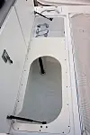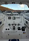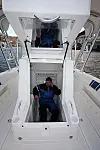 Du kan få utgaver med en liten sovelugar foran, men det går jo på bekostning av åpne flater og antallet fiskekummer. Man skal jo som sagt ikke sove bort natta når man fisker, men en ting som er viktig, selv på fisketur, er det å kunne gå på do. Det øker komforten og sikkerheten betraktelig. Å pisse over rekka er ikke noe problem når sjøen ligger blank, men noe helt annet når du ligger langt til havs i røff sjø. Toalettrommet har derfor fått en sentral plass og med brukbar komfort. En smart løsning var at de hadde plassert sikringsskapet inne på doveggen. På det absolutt tørreste stedet i denne båten. I og med at dette er en båt som er bygget for å tåle vær og vind, har man også tatt høyde for å lukke deler av instrumentpanelet. Stereoanlegg, plotter og andre skjermsensitive instrumenter ligger bak et eget glassvindu. Det vitner jo om at noen har tenkt!