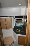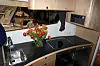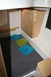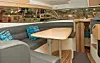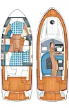 På babord side når du kommer inn i båten, finner du salongen og på styrbord side det elegante pantryet. Salongen er lys og lekker, og minner i utforming mye om løsningene på tradisjonelle helårsbåter som Viksund, Skorgenes og NB Marine. Under salongen er det en forbausende romslig og elegant lugar. Forpiggen er også stor og lekker. Dusj og bad er på hver sin side av båten.