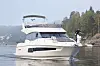 Jeanneau Prestige 460 er en voluminøs flybridgebåt med mange solsenger og elegant design i prisklassen over fem millioner kroner.