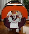Stolen er rett og slett en bilstol med flytemiddel. Dermed kan du frakte barnet i bilen og løfte det rett om bord, og stolen flyter om du skulle miste den.