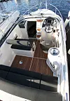BÅTER I SJØEN/SANDVIKA: Sammenlignet med 605 Explorer har C62 Cruiser fått høyere baug, som skal gi mindre dunking. Går vi om bord i nykommeren ser vi at det ikke er veldig mye som skiller disse to båtene. Noe av det første man legger merke til er dashbordet, som er mer i tiden. Det vil si bedre plass til kartplotter som får riktig vinkel i forhold til føreren. Den nye modellen har også fått delvis mørkere dashbord, noe som vil gi mindre reflekser i vinduet. Tommelen opp for det, men helt borte blir ikke refleksene, da det fortsatt er en god del hvite flater igjen. C62 får også større kryssholt enn 605 Explorer. Dessverre er det ikke gjort noe med badeplattformen, der det kreves litt vannakrobatikk om du skal få tak i redningsstigen selv, om du skulle være uheldig og falle i vannet.