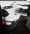 Under vasken er det gjort plass til et kokeapparat med ett bluss. Her vipper vi ut plata som har kokeapparatet fastskrudd på baksiden og setter den inn i sporet. Den nye modellen har også fått et integrert kalesjeløsning. Kalesjen ligger under den bakre delen av seteryggen til akterbenken. Modellen har soveplass for fire personer, to inne i kabinen og to på benken som med et enkelt grep gjøres om til køyeplass til to, eller solseng om man vil.