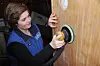 9. VANNTESTEN: Slipingen sjekkes med en våt klut. Der hvor treet endrer farge, er lakken fjernet. Andre steder må etterslipes, kanskje for hånd om det er lite lakk igjen. Treverket vil etter lakkering få samme farge som de våte feltene.
