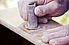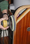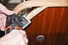 6. DELTASLIPER: Med en deltasliper kan det slipes på temmelig utilgjengelige områder. Etterpuss for hånd med sandpapir (120-korning). På bildet er det brukt en Fein-sag påsatt delta-forsats. Fein er et godt, ganske kostbart multiverktøy, men enkle, ...