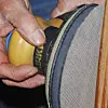 7. FINARBEID: Mirka-sliperen er her påsatt et finkornet nettpapir (Abranet Soft). Da kan slipingen presisjonsstyres, slik at finéren ikke blir skadet. Samtidig suges støvet bort fra overflaten.