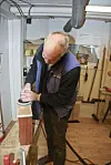 5. HELTRE: Håndlister og kantlister av heltre skal behandles fra grunnen av. Disse listene er av massiv mahogni. De sikles først, og blir deretter maskinpusset.