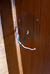 KABLER: Et hull ble boret gjennom skapet bak lampesokkelen og en rød (+) og svart (-) kabel trukket gjennom. Begge kablene var påsatt kabelsko på endene inne i skapet.Jan Hanchen-Michelsen