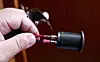 SJEKK: Vi sjekket at det var plass til flere ledninger inne i lampesokkelen. Deretter ble usb-adapterets «pyntedeksel» brukt som mal for å markere hullet som skulle bores.Jan Hanchen-Michelsen