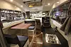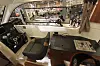 Det er svært høyt under taket i hytten, som rommer salong for fire på babord side og bysse på styrbord side. Og i taket er det en stor skyveluke. Det er store vinduer rundt hele hytta, som kan åpnes på begge sider. Skipperen har dermed god sikt i alle retninger.