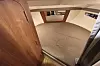 Spiseplassen kan slås ned og blir forvandlet til køyeplass for to personer. En tradisjonell dobbelkøye for to finner vi foran i båten. Under salongen er det stikkøye hvor det til nød kan ligge to personer. Mellom stikkøya og kabinen forut er det et lite toalettrom.