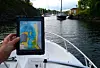 For å bruke sonar-funksjonen til Navionics må plotteren eller en iPad med Navionics være koblet opp mot et ekkolodd. Det viktigste er å måle opp farvann med skumle grunner, og da er det best med et fartøy med lav seilingsdybde. Vi bruker Vexilar Sonar Phone som koster ca 3000 kroner. Denne en montert i en 17-fots motorbåt. Enheten sender dybdedata til iPaden via Wi-Fi. Vexilar har et brukergrensesnitt som fungerer direkte med appen til Navionics uten komplisert oppsett. Det eneste vi slet med var å få forandret dybder fra fot til meter, og vanntemperaturen til Celsius.