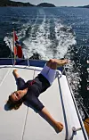 Båtlivs reisende sommerteam ble møtt av familien Gulbransen fra Kolbotn som straks vi svingte inn i havna tilbydde seg å hjelpe med å få vår store Fountaine Pajot Highland Pilot på plass i båsen. Vi hadde fem meter til rådighet. Båten vår er 4,5 meter bred, da er det godt med folk som viser hjelpsomhet og style i havnen. Selv hadde de en Sunseeker 51 fot camargue. De visste alt om hvor viktig det er å føle seg velkommen i en havn med litt større båt. De hadde vært på havna i flere år, og sa at de var en fast gjeng som ofte møttes her før veien gikk videre sørover eller østover til svenskekysten.