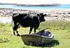 Her får vi også møte en den øvrige delen av lokalbefolkningen, nemlig en flokk på rundt 20 kuer og oksekalver som overhodet ikke lar seg skremme av våre amatørmessige forsøk på å gjete dem bort fra matpakkene våre. De firbente er heldigvis av det godlynte slaget, der de står og stirrer og lukter på oss.