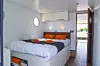 – La Mare anbefaler at husbåter i Skandinavia utrustes med 7,5 centimeter isolasjon. Dette tilsvarer 30 centimeter vanlig isolasjon i en bolig. Det er også doble aluminiumsvinduer med god isolasjonsevne. I tillegg anbefaler La Mare seks solcellepanel i Norge i stedet for fire som er standard ellers. Det er valgfritt med strøm og gass eller man kan velge både gass og strøm. Man har også tilvalg på vannbåren varme. Da er man bedre rustet til å kunne bruke husbåten året rundt, sier Einang.