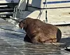 BRYGGELANGS: En hvalross tar seg en tur på brygga i båthavna..