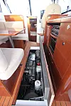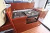 Ved siden av føreren er det en benk med plass til en halvannen person. Salonggruppen bak består av en u-sofa, med plass til fire-fem voksne, og et tilsynelatende velfungerende bysse på styrbord side. Her er det både komfyr, to kokebluss og vask med kum. Under førersetet er et lite kjøleskap, og i tillegg er det skuffer og skap som helt sikkert vil settes pris på.