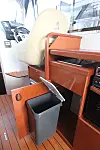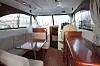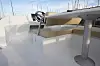 Plassen på flybridgen gir et inntrykk av at her har designeren bestemt seg for å ha førerplass med sittegruppe bak, uansett hvor lite plass det har vært til rådighet. Ryggstøtten til førerstolen kan vippes, slik at det blir en liten u-benk. Det er mulig det lille bordet er altfor stort i forhold til omstendighetene, men benket rundt bordet sitter man ganske så inneklemt. Et lite rundt bord hadde nok fungert mye bedre. Ryggstøtte til deler av benkene er også et savn.