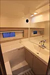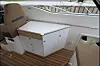 Over akterkabinen er en stor solseng, eventuelt en aktersofa, om man ønsker det. Den aktervendte benken å har mulighet for rygglene. Benken har to funksjoner, det ene er at den fungerer som en passasje over motoren når man skal gå fra den ene siden av badeplattformen til den andre, over motorene. Den andre funksjonen er at når man kjører, løftes plata som en spoiler, og skal dempe støy fra motorene. På undersiden er det støydempende materiale.