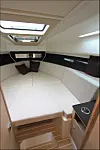 Utenbordsmotorer gir god plassbesparelse om bord, sammenlignet om det hadde vært innenbordsmotor. Denne plassen er utnyttet til en sjenerøs akterkabin med god køyeplass. Et panoramavindu gir utsikt akterover og slipper godt inn med lys.