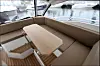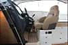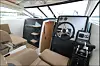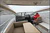 Selv med taket over cockpiten lukket slippes det godt inn med lys. På sidene er det store panoramavinduer som gir førsteklasses utsikt fra cockpiten. Det er benyttet lys eik på alle tredetaljer i båtens innredning, som skaper et moderne og lyst interiør. Tekstiler og andre dekorelementer er i varme fargetoner, og mørkt skinn har kontrastsømmer. Forkabinen er som resten av båten; lys og innbydende, med eikeinnredning
