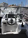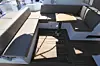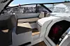 Vi går om bord fra badeplattformen, på styrbord side. Vil man fram til baugpartiet er dette mulig via dollbordet også fra babord side på badeplattformen. Det er lagt opp til at man skal komme seg greit rundt båten på begge sider om man vil frem til solsenga oppe på forkabinen. Akter er det også en stor solseng på motorkassa, og deler av solsenga gir også plass til akterbenken. Det en stor u-formet sofabenk rundt spisebordet, og på styrbord side er et pantry med vask og kjøleskap. Her vil vi tro at det også blir grill eller kokemuligheter. Det er også en velutstyrt bysse nedunder, men nordmenn foretrekker vel helst å steke maten ute, og ikke midt i en lukket salong. Vi ser litt mer på løsningen utvendig før vi trekker ned. Førerbenken har plass til to personer, og foran er det plotter og masse instrumenter og tilgang til nødvendige brytere. Selve instrumentene kan kanskje virke litt langt bak. Et forbedringspotensial for en solskinnsbåt som denne er det det kritthvite dashbordet som gir store speilreflekser i vinduet.