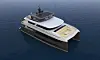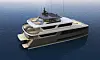 Båten får aluminiumskonstruksjon, og katamaranskroget gir to båtgarasjer. Rekkevidden oppgis til 2000 nautiske, og toppfarten blir 20 knop. Produsenten skriver i en pressemelding at her er det også lagt vekt på sikkerhet, og at den skal tåle havkrysninger. De sammenligner med en tilsvarende enkeltskroget båt, med samme lengde, og vekten skal da være det samme. Til gjengjeld for bredden får denne seks gjestelugarer.