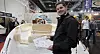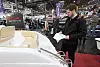 Vi stopper ved en stand, der vi vet at produsenten ikke har forhandler i Norge. Svagård spør selgeren, som for øvrig også er eier av båtmerket.