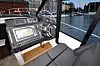 Den finske producenten prøver å kombionere komfort med tøff design, og skal være planlagt til minste detalj. Her er det godt med sitteplasser ute, både oppe på flybridgen og utvendig, under tak på akterdekket. Her er en L-formet sofa med bord. På flybrifghen er det solseng og en uformet sofabenk.