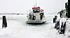 Mens de store fergene sliter med isen, jobber «Jutøya» seg fram i råken mellom Tenvik og Veierland. Se film!