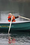 Audun får raskt dreis på båten, og etter noen få åretak klarer han til og med å snu båten rundt sin egen akse! Takket være årene som sitter fast.