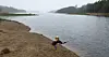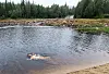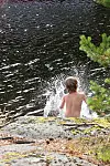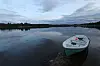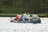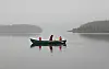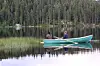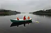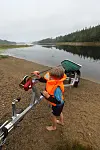 – Dette var det enkleste ved hele turen så langt, sier Tone, etter at Audun (8) har fått æren av sjøsettingen. Vi ror ut i den idylliske innsjøen. Det sies at etter regn kommer i sol. I hvert fall er det idyllisk når disen ligger lett på det blikkstille vannet.