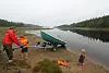 Helt nord i Mykle-vassdraget finner vi et idyllisk sted å slå leir. Vannet er reint trolsk etter regnværet. Å sette ut båten er uproblematisk.