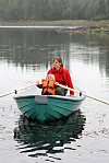 Anne-Synnøve prøver også, og selv femåringen takler båten som veiere mange ganger hennes egen vekt. Den lille grønne «seimannen» er blitt en av hennes store sommerminner, den første båten hun har rodd.
